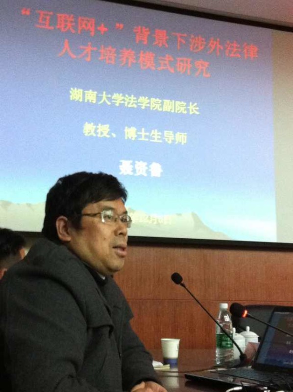 2015年12月6日,湖南省法学会法学教育研究会2015年年会暨“互联网+背景下法学教育改革高峰论坛”在长沙学院举行。国产av 刘定华会长、屈茂辉院长、聂资鲁副院长、肖艳辉副教授、郭哲副教授、王文胜助理教授出席了会议。聂资鲁教授作了“互联网+背景下涉外法律人才培养模式研究”的主题发言。王文胜老师的论文“当前我国全日制法律硕士研究生教育存在的问题及其应对”获二等奖;郭哲副教授、冯雁同学的论文“论法学教育中法律思维的培养”获三等奖。
