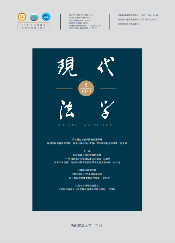 江必新教授在法学CSSCI来源期刊、中文核心期刊《现代法学》2022年第5期发表论文《习近平法治思想理论体系研究》。