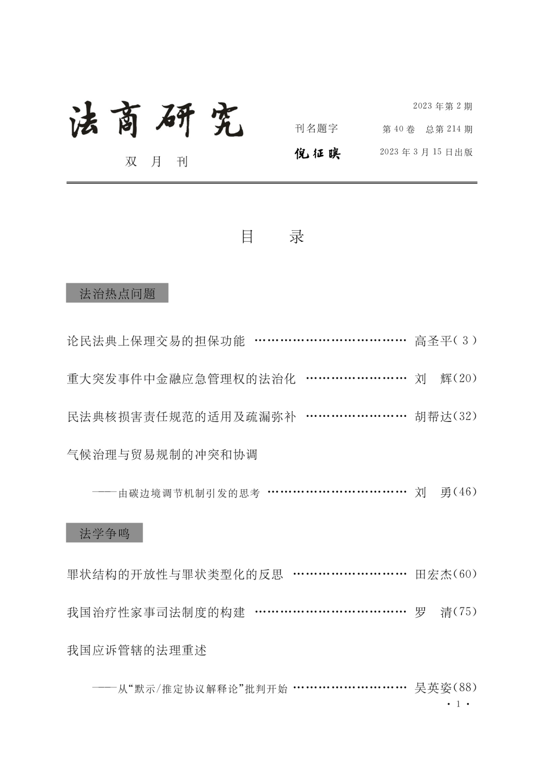 刘辉副教授在《法商研究》发表论文《重大突发事件中金融应急管理权的法治化》,该文为作者主持的国家司法部法治建设与法学理论研究部级科研项目“重大突发事件中金融应急管理法治保障研究”(20SFB3019)的阶段性研究成果。