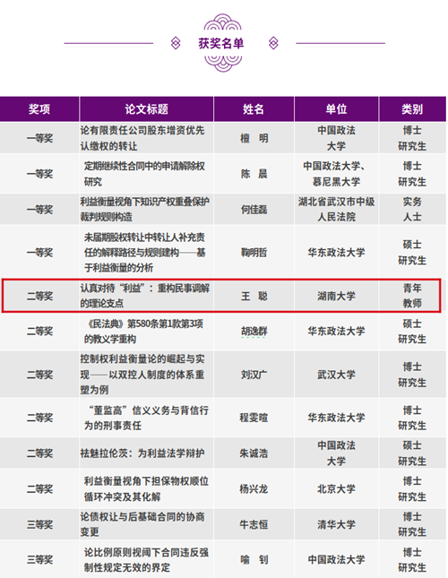 助理教授、法学博士王聪凭借论文《认真对待“利益”:重构民事调解的理论支点》获得二等奖。据了解,本次活动颁奖仪式将于2025年5月17日在同济大学国产av