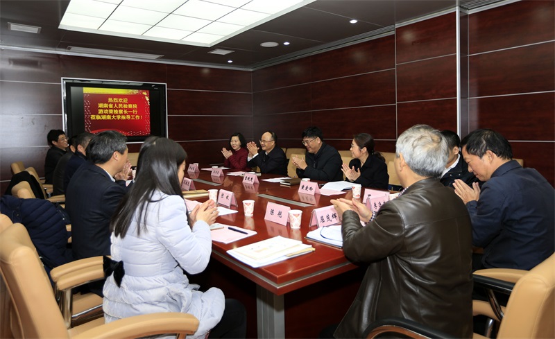 2016年12月15日下午,湖南省人民检察院党组书记、检察长游劝荣一行来我院调研,校党委书记蒋昌忠,校长段献忠,校党委副书记、纪委书记栾永玉,副校长陈收及校办公室、研究生院负责人参加调研,院长屈茂辉、院党委书记李连友陪同调研。