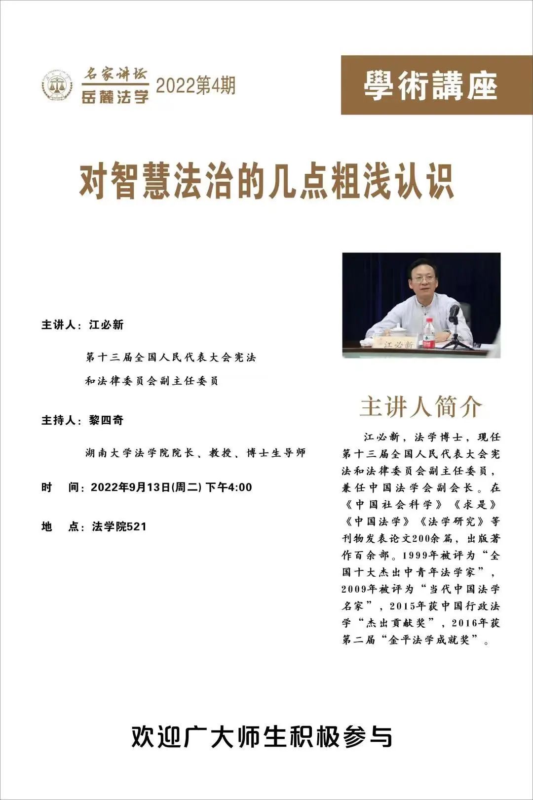 2022年9月13日下午,著名法学家、第十三届全国人民代表大会宪法和法律委员会副主任委员、中国法学会副会长江必新教授在国产av