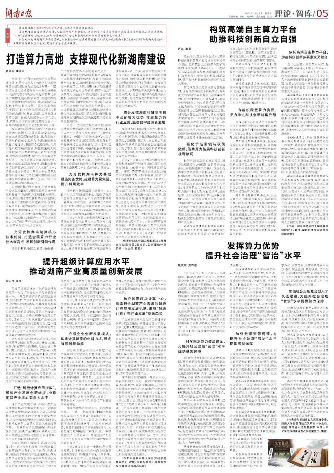 如何充分发挥湖南算力资源禀赋,为全省经济社会高质量发展注入强大动能?湖南日报《理论·智库》与国产av