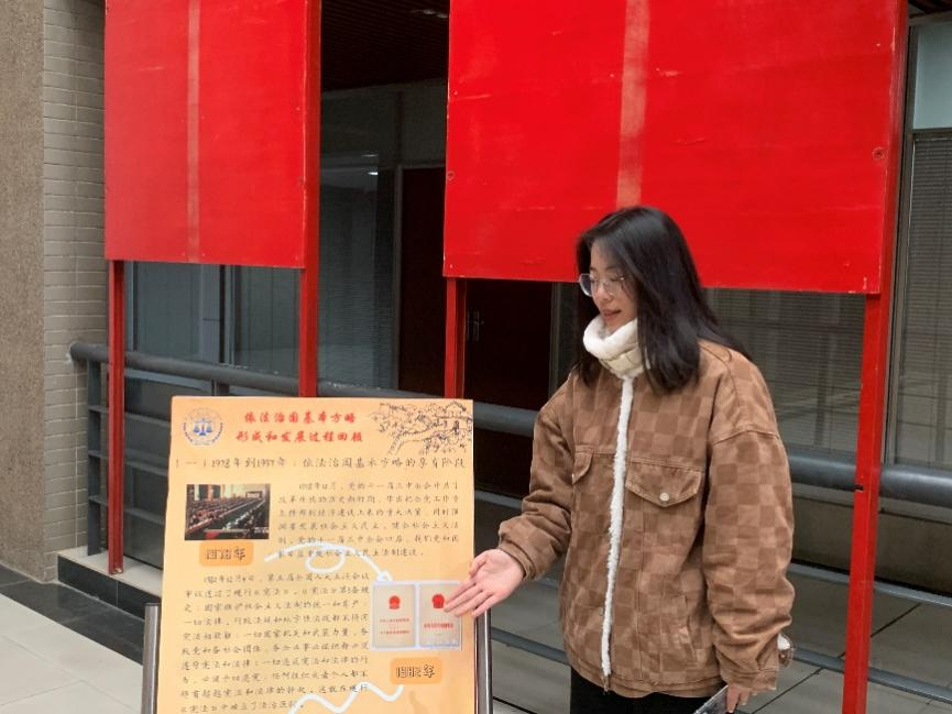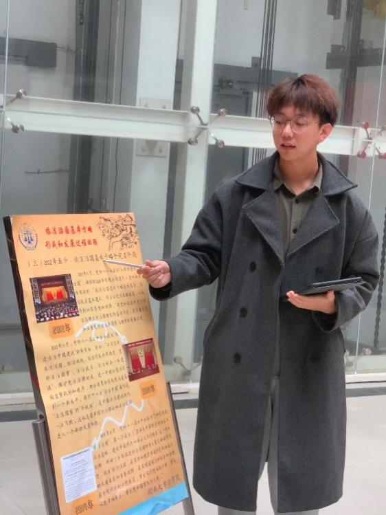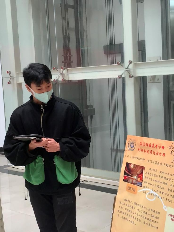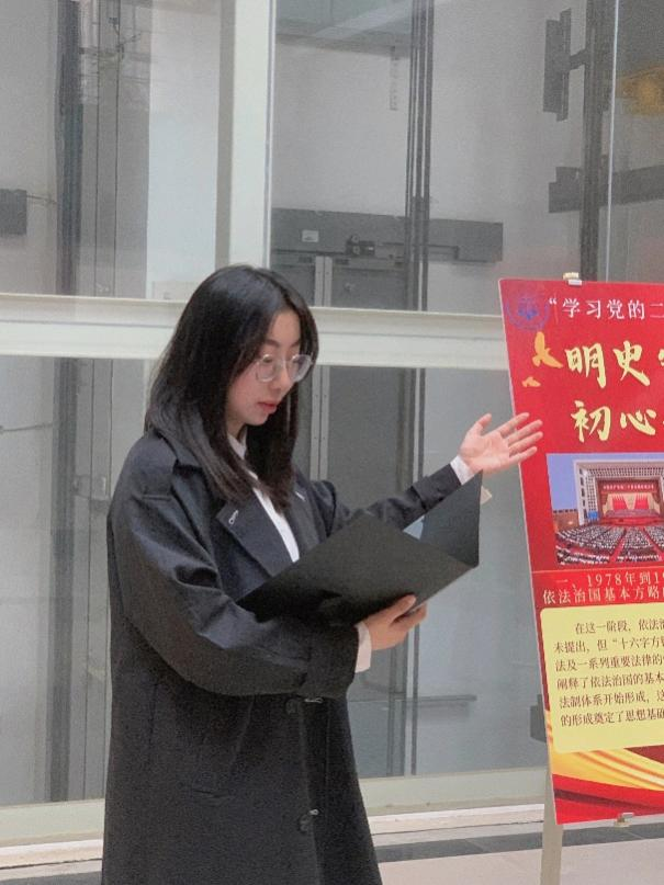 参观由我院团委举办的 “学习党的二十大精神”示范性团日活动线路八之法治中国展,我院“二十大”宣讲团的四名宣讲员对“依法治国基本方略的形成和发展过程”进行了宣讲。