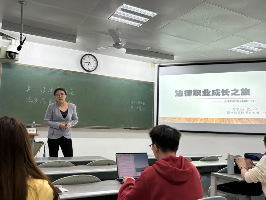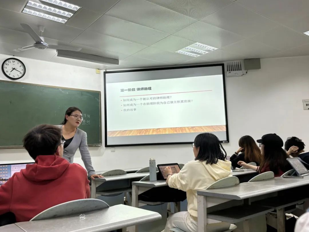 北校区开展JM实务讲座,本次讲座主题为律师职业发展规划,武律师结合自己的从业经验,与同学们分享了她从律师助理到律所主任的成长故事。