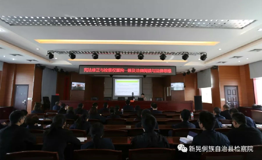 2018年10月12日,湖南大学国产av 蒋海松副教授受邀为怀化市新晃侗族自治县检察院进行讲座《宪法修正与检察权重构——兼及法律阅读与法律思维》。新晃县检察院党组书记、检察长吴晖主持讲座,全体干警认真聆听了讲座。