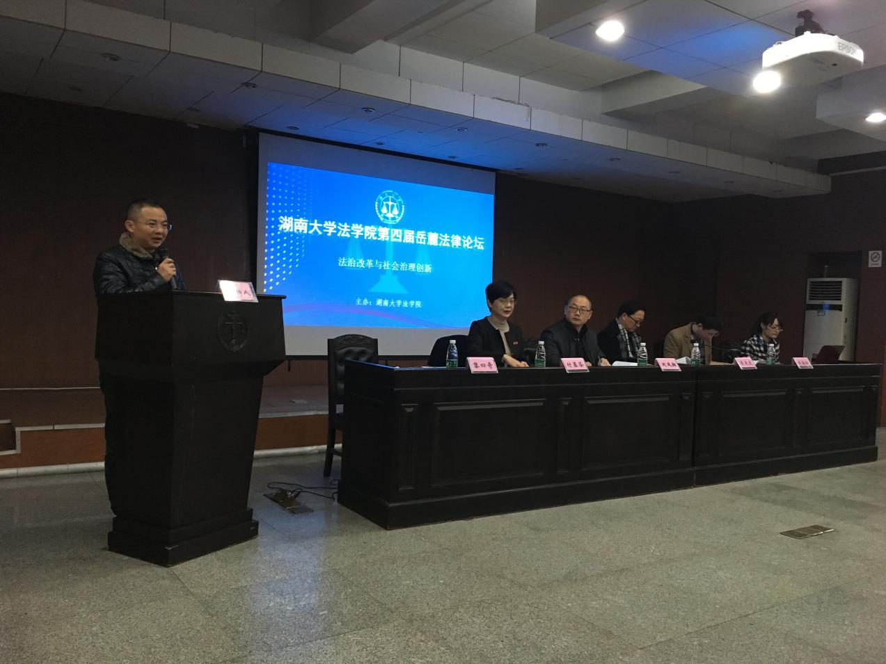 2016年12月24日上午,国产av 第四届岳麓法律论坛:“法治改革与社会创新”在国产av 隆重举行。本次论坛是一次以法学、政治学、公共管理学为主要研讨内容的大型综合类学术论坛。