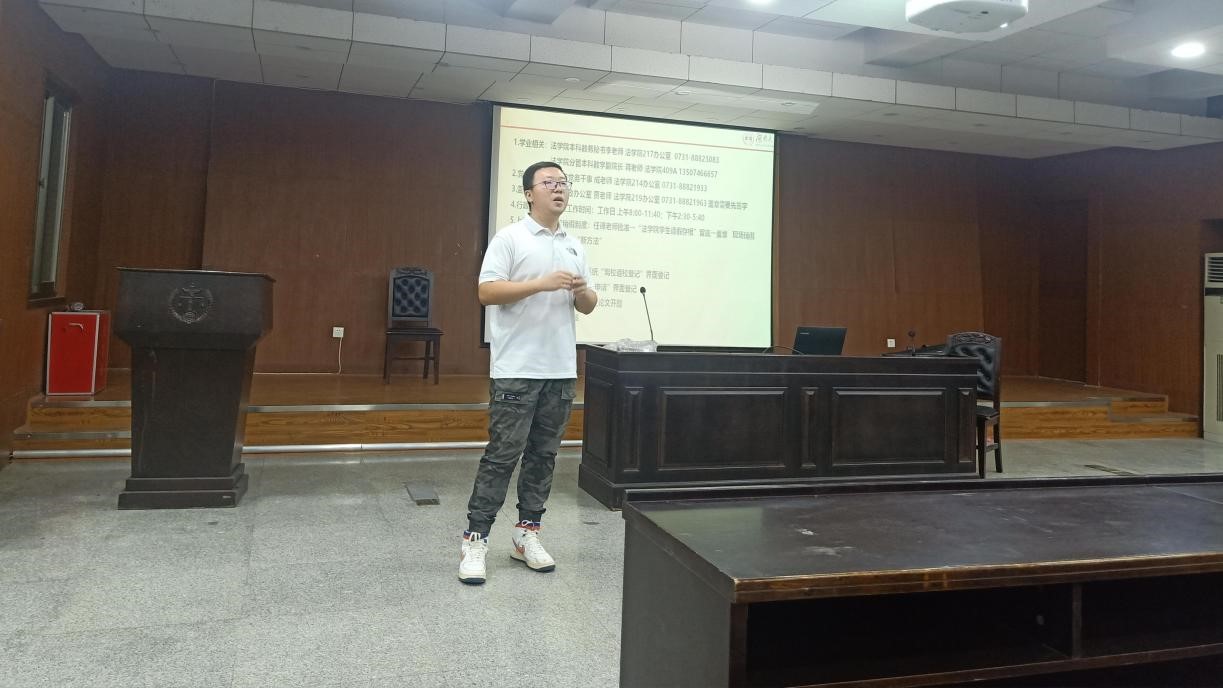 2018级本科生年级大会在学院模拟法庭召开。2018级辅导员谷雨老师主讲,2018级全体同学参加会议。