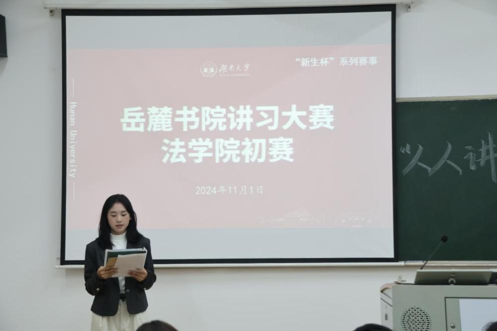 303教室,以“人人讲书院,慧语传文脉”为主题举办岳麓书院讲习大赛院内初赛。本次大赛的评委由首届“岳麓法韵”讲习大赛获奖者乌丽凡·叶尔江,李沣达,苏钰旸,学习部负责人韩东瑜、黄文颢,23级学习部干事张炀六位同学组成。