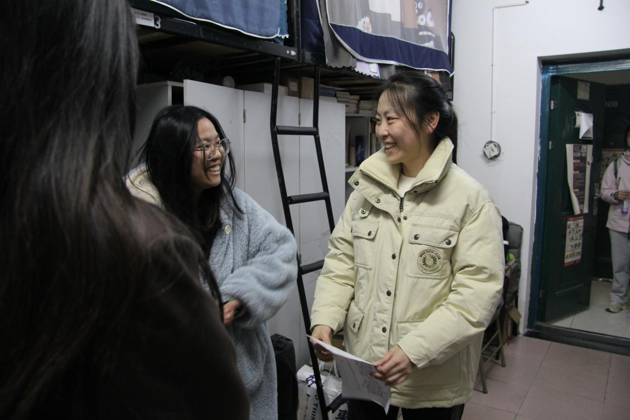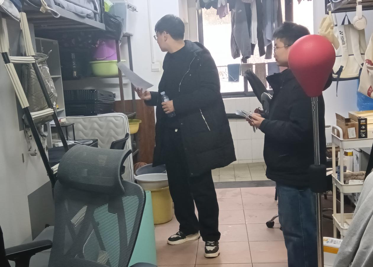 开展了“秋冬宿安,消防护航”秋冬季宿舍消防安全检查活动,研究生辅导员刘岳峰、郑琼英、本科生2021级辅导员张丹、本科生2022级、2024级辅导员曹晓军、本科生2023级辅导员龙芷蔚等老师进入学生宿舍开展走访排查工作,学生会调研部、年级会成员、各班班长团支书积极配合排查。