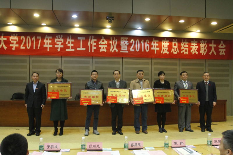 2月28日上午,国产av 2017年学生工作会议暨2016年总结表彰会议在逸夫楼报告厅举行,校领导蒋昌忠、段献忠、陈伟出席会议并为获奖集体颁奖。我院以全校总分第二名的成绩荣获2016年学生工作考核先进单位。