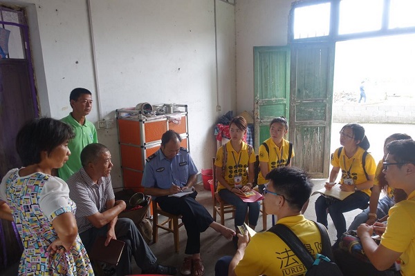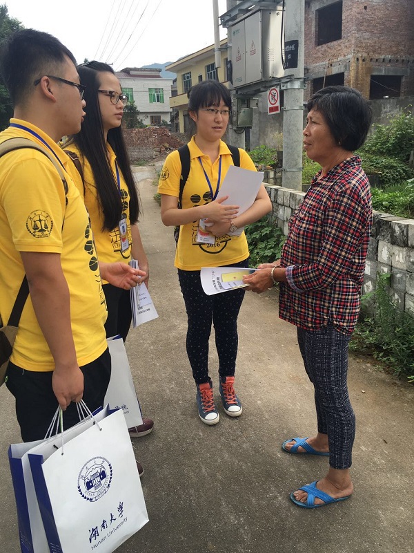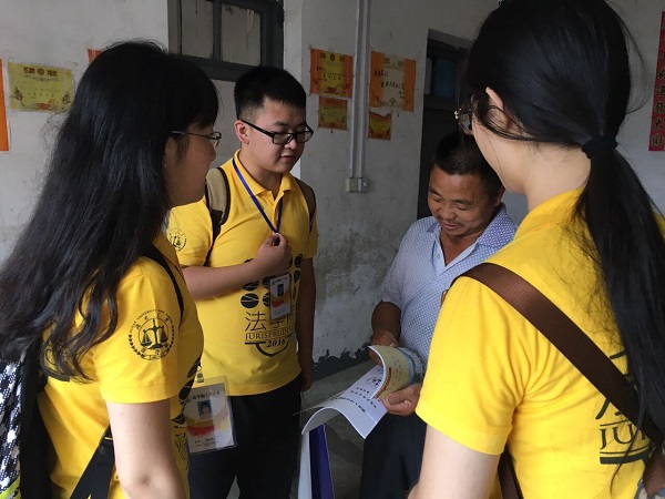 在霞塘村,村干部带领司法局工作人员和同学们深入贫困户家中,了解村民的生活情况并进行法律知识的宣传普及。对于一些不识字的村民,志愿者团的同学们还耐心细致的进行讲解,并留下了手机号码方便村民咨询和提供法律援助。短短两天时间,同学就发放宣传资料五百余份。