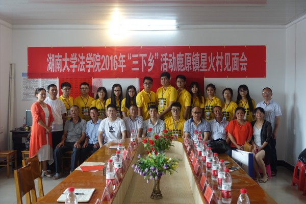 开展“三下乡”工作。胡主席希望实践团成员在星火村多走走,多看看,认真开展调研工作,真实了解基层情况,同时充分利用炎陵丰富的文化资源,学习炎帝文化,传承炎帝精神。星火村唐莳平书记向同学们介绍了星火村概况,以及当地加强政治建设、经济建设、文化建设、社会建设和生态文明建设的举措和成效,并重点介绍了基层党组织的建设情况。胡主席和唐书记的介绍使同学们对炎陵县、鹿原镇和星火村有了基本的了解,为今后开展普法宣传、精准扶贫调研等工作奠定了基础。