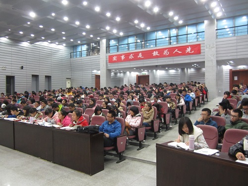 分团委常务副书记、辅导员杨凯主持讲座,干训班全体学员、第56期入党积极分子培训班学员300余人参加了讲座。
