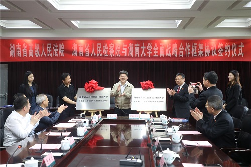 (谢赤副校长代表学校与湖南省高级人民法院、湖南省人民检察院签约)