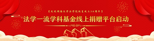法学一流学科发展基金”在线捐赠平台。平台启动以来,获得了广大校友及各界人士的热烈响应。2020年7月6日,湘军麓和律师事务所李含英校友为基金捐赠20000元,彭彤校友捐赠10000元以支持母校发展。