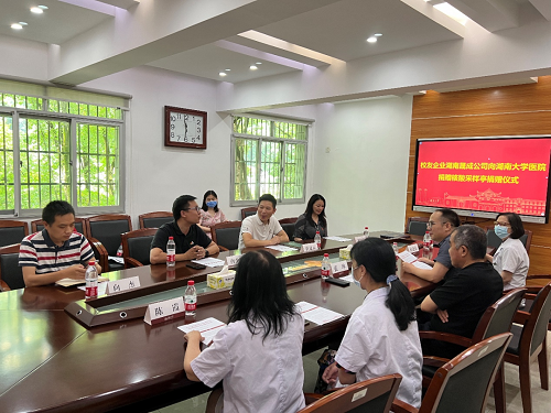 医院党委书记张坤同志与湖南晟成公司董事长唐少华先生代表双方进行捐赠交接。
