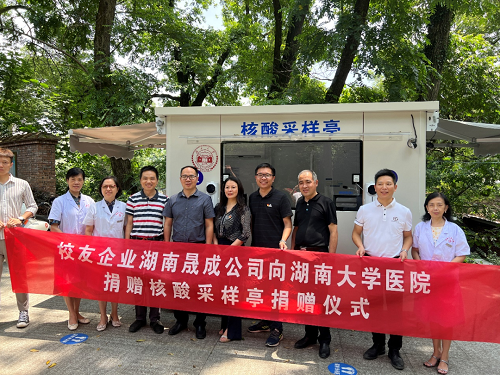 医院捐赠核酸采样亭捐赠仪式在校医院举行。
