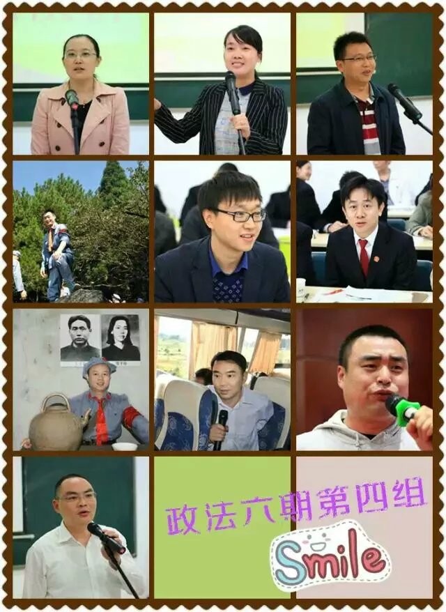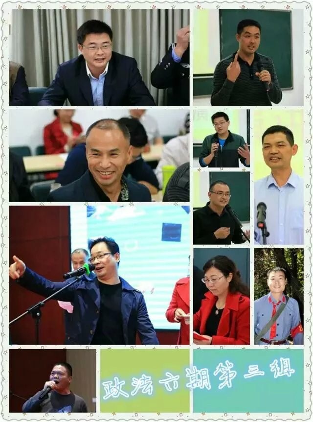 六组的建军兄是沉浸在自己的爱好之中的乖乖眼镜男,于是黄金组合之组的组母姣姣美女任重道远了。最佩服和羡慕这一组,无论什么时候的聚会,总是全员到齐,仿佛他们的心时时绑在一起的,那么同心的一群人!姣姣声音低低的温柔,精致的短发散发出活力和干劲。我爱这个女生!每每读到她空间里的文字,就仿佛身心和她在一起沉浸到那些碎碎念的美好生活之中。翠玲外表文秀,业务上可是当之无愧的检察精英,是业内我学习的楷模;坚哥那一书苍劲有力的“恰同学少年”,把我们所有的美好升华; 英伟人如其名,英俊高大,纵然家景殷实,却实不显山露水,待人待物极度谦虚客气; 永兴师兄的话最最实在,听说他们小组聚会,二话不说,驱车四百里路深夜赶到,只为了一份情义;小小明和田小勇就是公安战线的精英了,小小年纪已经在负责人的岗位上锻炼多时,相信有他们这样忠诚于法律忠实于国徽的勇士们,我们的社会会越来越安稳;悦悦是我的好朋友,像他这样有十八般武艺的精英贤达,我真是不知道从他哪个特长说起好,总之就是优秀啦 熊教更是热爱工作热爱生活的好警察真男人,每天最早在群里问候大家早安的人就是他,前日省内的各大媒体还竞相转发他水中擒贼的英勇事迹呢 。