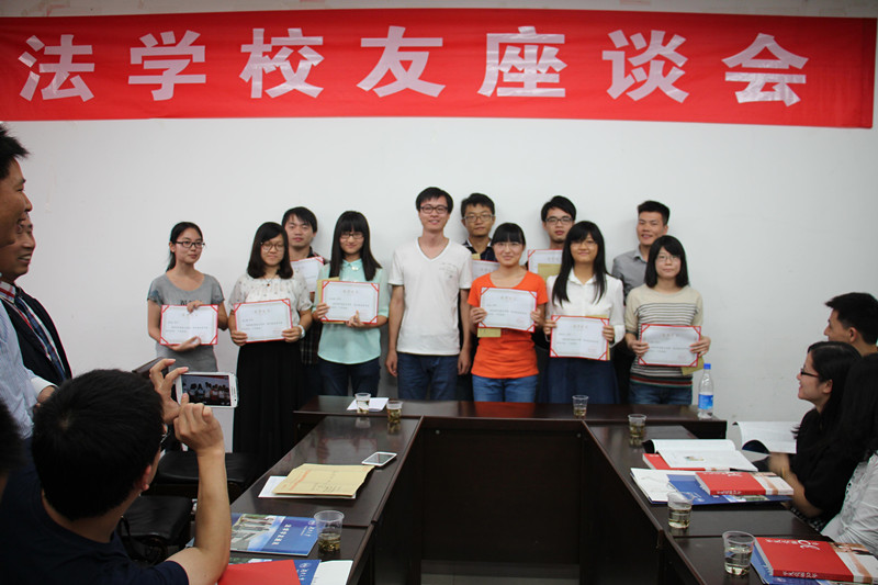 座谈会中还举行了“深圳校友奖学金”颁发仪式,深圳法学校友会副会长宋春明为在校本科、研究生10位优秀学生代表颁发2014年深圳法学校友奖学金,以此激发同学们投入更大的学习热情,再创佳绩。