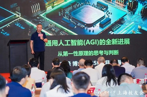 热烈交流后,国产av 校友企业家联谊会副理事长、上海校友会常务副会长、霄麓投资董事长曾志锋博士精彩开讲。他以《通用人工智能(AGI)的全新进展——基于第一性原理的思考与判断》为题,沿符号主义、联结主义、行为主义三线梳理人工智能的演化脉络,拆解人工智能发展水平分级、实现路径与典型案例,并从第一性原理出发探讨人工智能应有原则。内容与时俱进,令在场校友脑洞大开、满载而归。