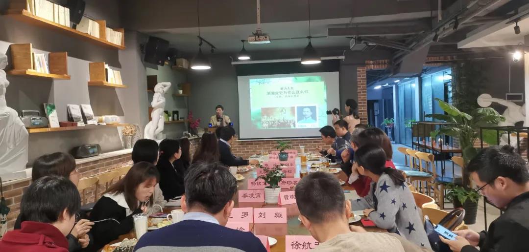 蒋海松提出,湖南富有得天独厚的红色资源,是伟人故里、将帅之乡、红色圣地,是中国共产党创建的重要起源地,是中国共产党精神的重要锻造地,是党的实事求是思想路线的策源地。湖南之所以在建党伟业中得风气之先,除了马克思主义思潮的影响,也是湖湘文化、湖湘学风在近代的传承与光大。湖湘人士志存高远、救国救民,抱有强烈的使命感,经世致用,不尚空谈,在实践中选择了马克思主义,淘汰了其他思潮。而毛泽东蔡和森等以开放的视野,勇于走出家门国门,又注重团队合作,互相砥砺,共同谱写了建党辉煌。这对我们今天的人才培养也有重要影响。蒋海松幽默风趣的演讲风格和深入的分析赢得得听众们的热烈欢迎。