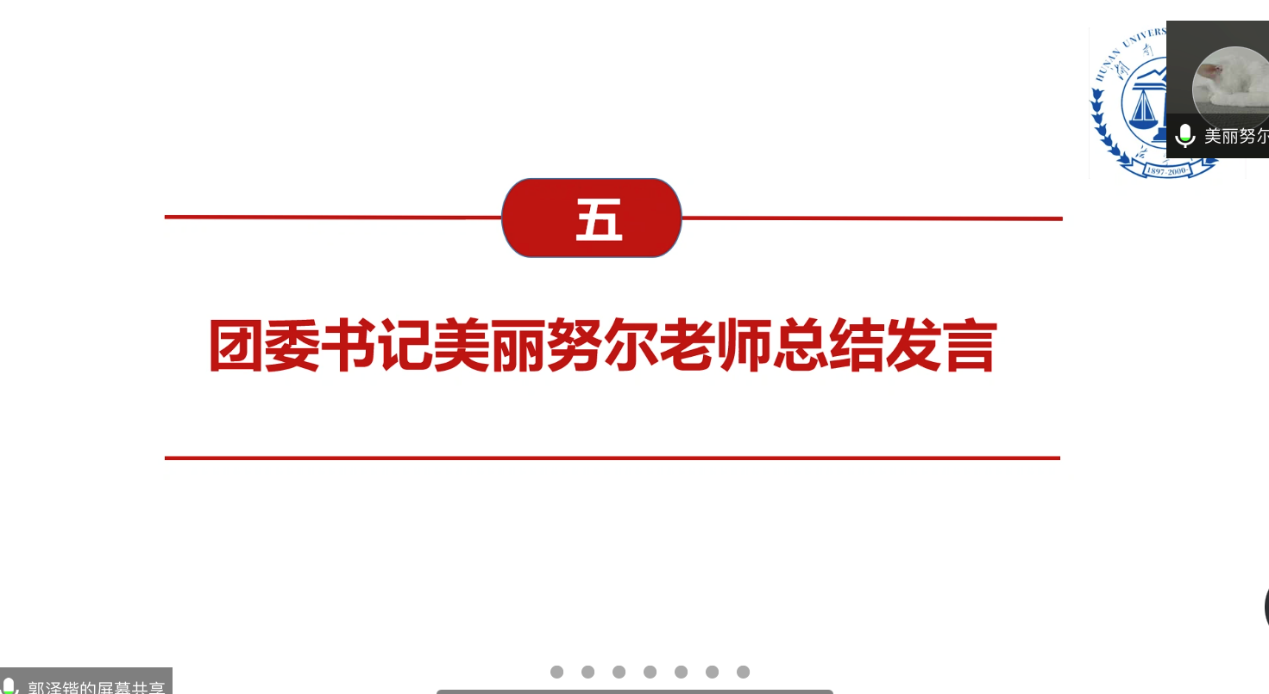 美丽努尔老师在总结发言时总结了我院团委、学生会在上一年度的工作中取得的成绩以及存在的不足,并对各部门前阶段工作情况做简要点评。她表示,各部门要进一步整理工作思路,增强参与学生工作的主观能动性,多提方案而不是仅仅抛问题,同时各部门要抓好自身建设,打造过硬本领。