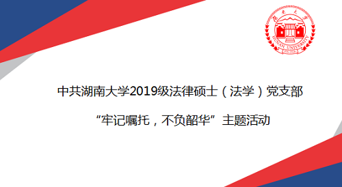 为深入学习习近平新时代中国特色社会主义思想,将学习宣传贯彻落实习近平总书记来校考察调研重要讲话精神引向深入,进一步激励我校研究生牢记习近平总书记殷殷嘱托,不负青春韶华,为实现第二个百年奋斗目标、实现中华民族伟大复兴的中国梦奉献自己的智慧和力量,根据学校党委工作部署,决定于2020年10月16日晚8点在2019级法律硕士(法学)党支部中开展“牢记嘱托、不负韶华,”主题党日活动。