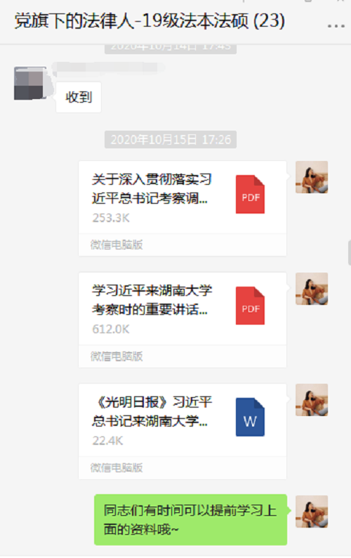 由于支部中接近半数同志在外完成毕业实习工作,因此本次主题活动通过腾讯会议的方式线上举行,支部书记刘淑贤同志已经提前将学习文件发送给同志们,同志们也认真开展了预习和回顾。