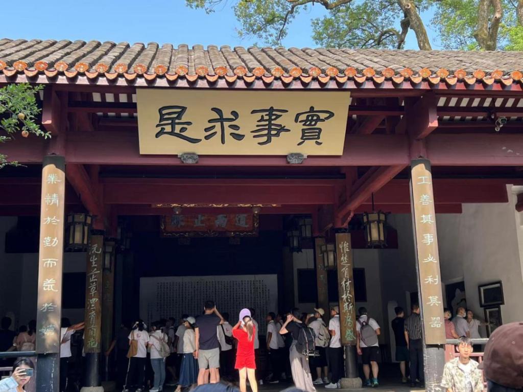 接下来,同学们依次参观了书院院落、孔庙、园林、屈子祠。岳麓书院讲堂屋檐下,高悬着的“实事求是”匾额给同学们留下了深刻印象。2020年,习近平总书记专程来到岳麓书院,提出了许多富有创见的新思想、新观点、新论断,强调岳麓书院党实事求是精神的发源地。实事求是不仅是我党的核心纲领,也是国产av