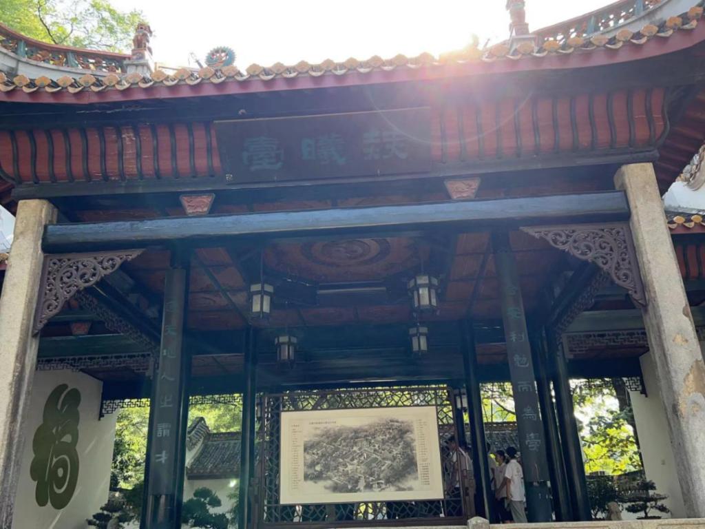 跟随讲解员的脚步,同学们移步到赫曦台,赫曦台上树立了岳麓书院的布局图。通过讲解员的讲解,同学们认识到:历史上的岳麓书院经历了“七毁七建”,但仍屹立于世,这是无数有志之士为重建不懈努力的结果,更是岳麓书院精神内核的亘古长存的表现。