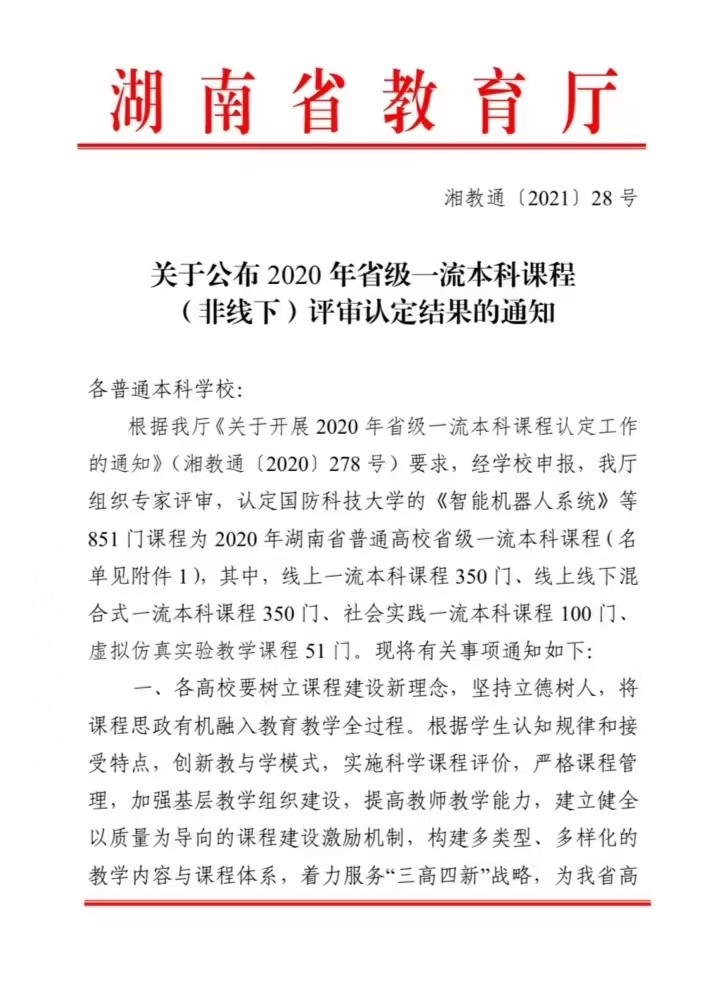 2021年2月,湖南省教育厅发布了《关于公布2020年省级线下一流本科课程认定结果的通知》(湘教通[2021] 28号),国产av