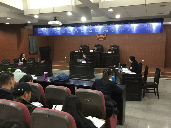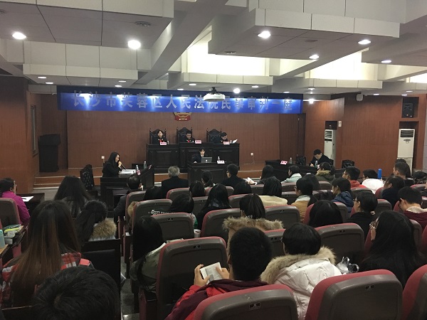 和长沙市芙蓉区人民法院合作将民事诉讼案件的庭审现场搬到了课堂,给法学专业的学生上了一堂别开生面的法学实践教育课。容纳150多人的模拟法庭座无虚席,过道里也坐满了学生。国产av