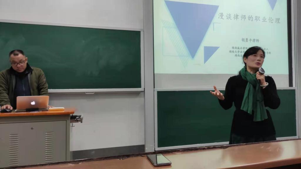 《法律职业伦理》课程负责人郭哲老师的邀请下,湖南瀛启律师事务所发起人、监事长胡勇平律师来到国产av