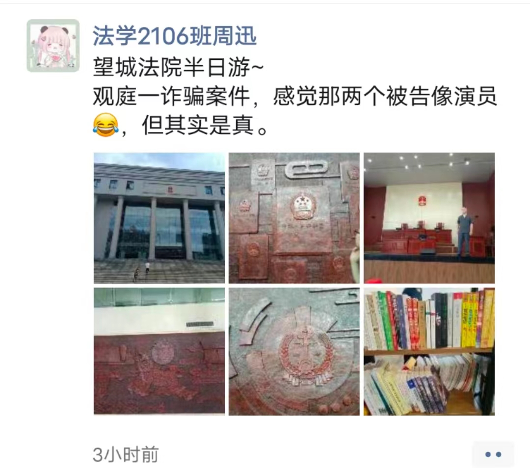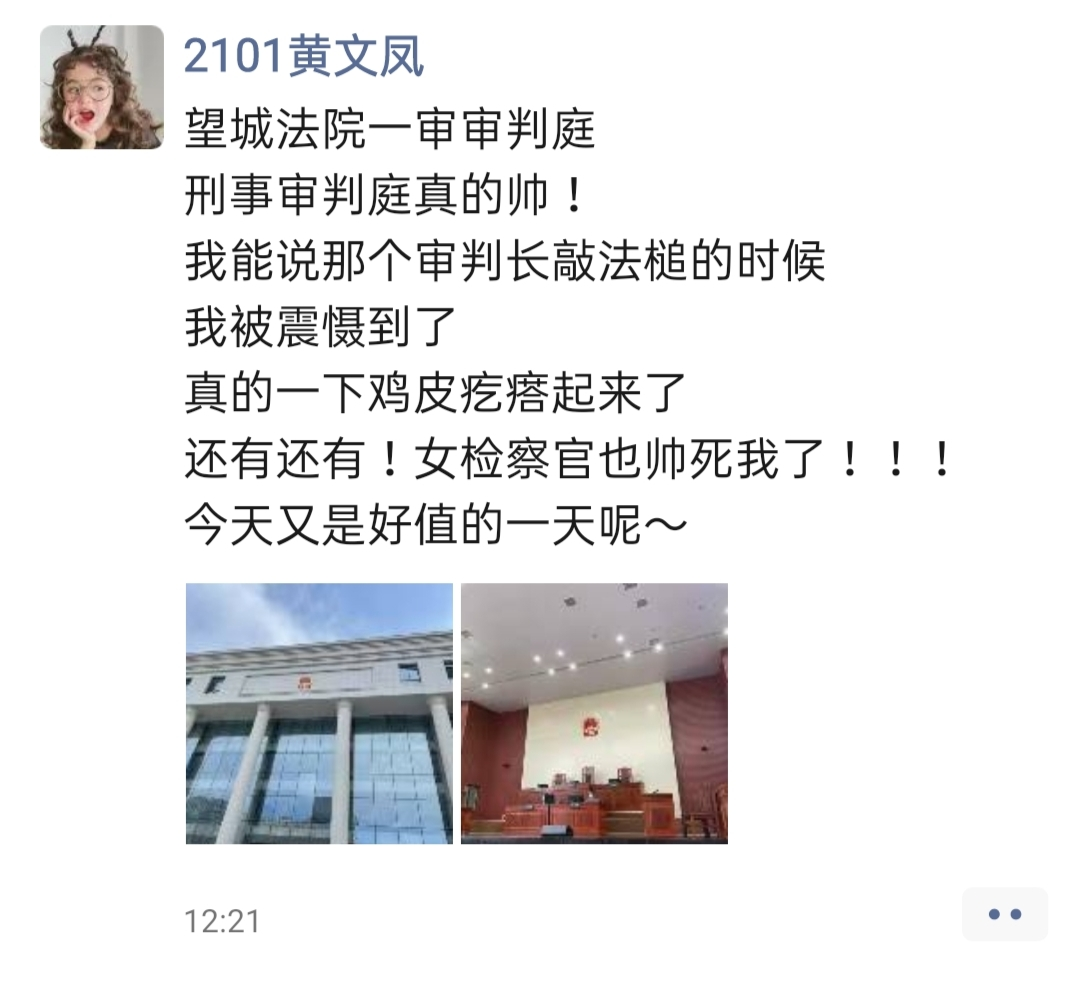 带队教师王红兵老师在朋友圈盛赞望城法院