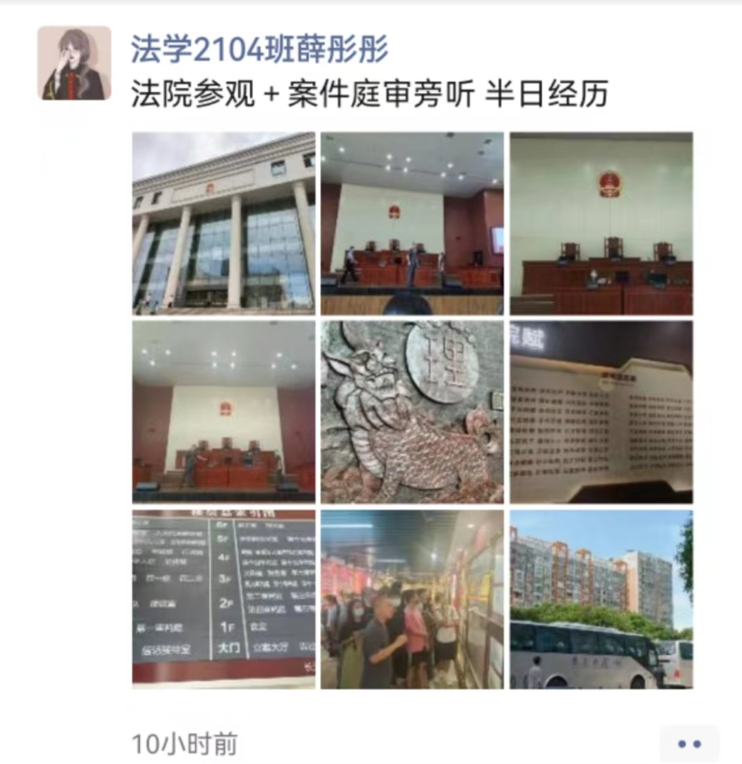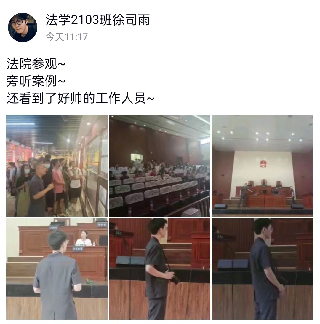 2021级本科生于2022年6月23日上午前往望城区人民法院参观学习,这是本年度夏季实践课程“专业见识”课活动之一。活动由王红兵老师带队,教学副院长蒋海松协调。