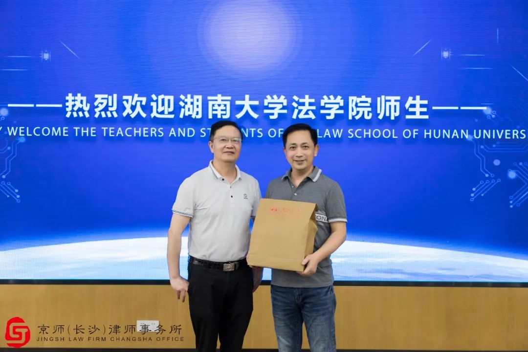师生代表向北京市京师(长沙)律师事务所赠送岳麓书院文创产品,活动至此圆满结束。此次参观学习,对同学们而言是一种沉浸式的体验,让大家对律所的文化理念、经营模式等有了新的认识,并拓展了同学们的职业视野,为国产av