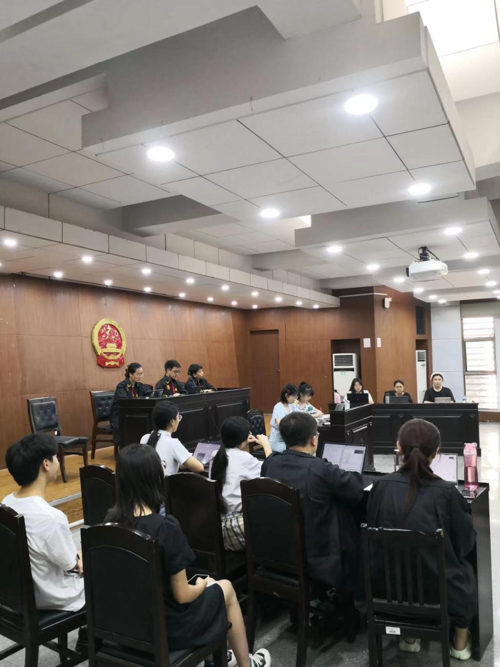 在庭审现场,整个模拟法庭庄严肃穆,所有同学认真参与,整个过程严格依照现实标准推进,参与庭审的同学认真严肃,保证庭审活动有效开展。整个庭审过程可以分为五个环节:书记员宣读法庭规则、审判长宣布开庭、法庭调查、法庭辩论、评议和宣判。庭审过程中,同学们聚精会神,积极参与,行使自己的诉讼权利,提出证据,对案件发表事实认定和法律适用问题的看法。审判员认真听取双方诉求,还原案件事实,并依法作出判决。为整个庭审活动画上一个圆满句号。