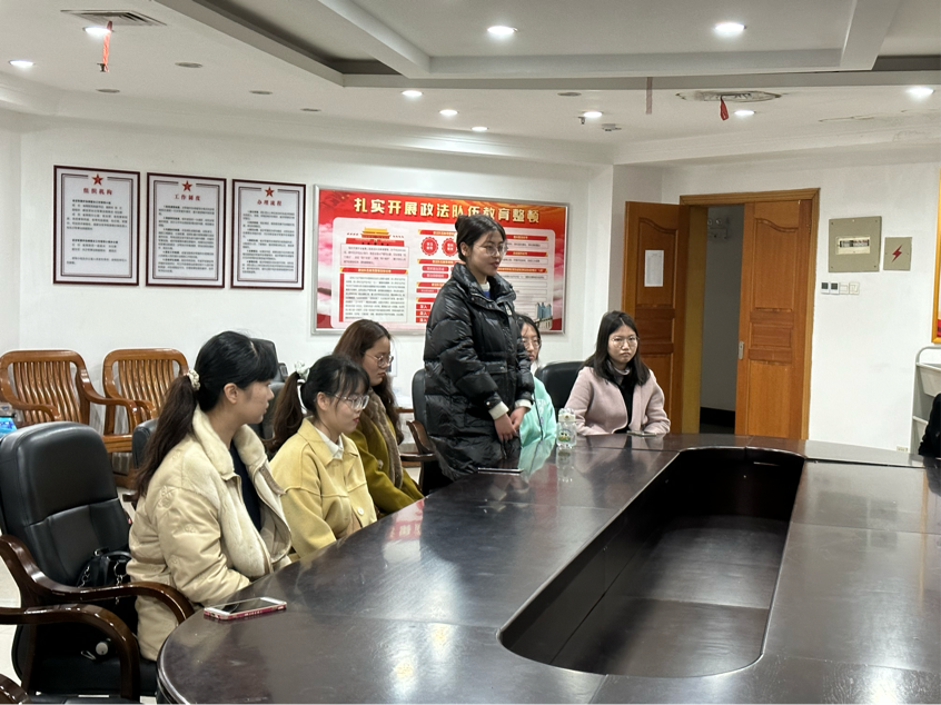 庭长孙元清对实习工作中的有关注意事项进行了强调,提醒同学们遵守保密纪律,也对同学们表达了深切期望。最后,副庭长曾志红也对实习内容进行了安排,由浅入深,先学习整理案卷等工作,熟悉案件的程序,在此基础之上接触实质性的工作,希望实习生们在本次实习中有所收获。