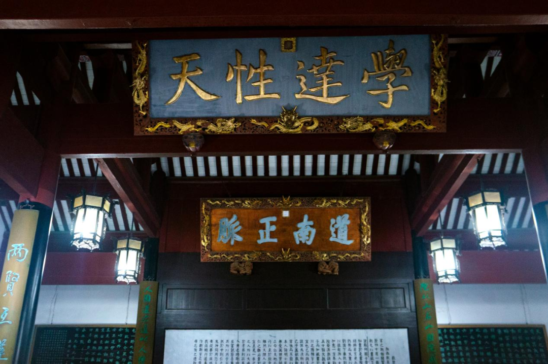 弦歌不绝,学脉延绵。首先,映入眼帘的是岳麓书院的大门,其在宋代曾名“中门”,因江岸建有石坊,又名“黉门”。两侧悬挂有对联“惟楚有材,于斯为盛”,上联出自《左传·襄公二十六年》,下联出自《论语·泰伯》,源出经典,联意关切,道出了岳麓书院英材辈出的历史事实。