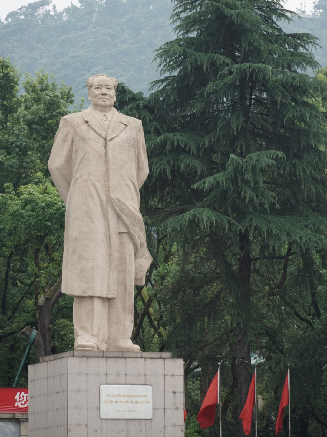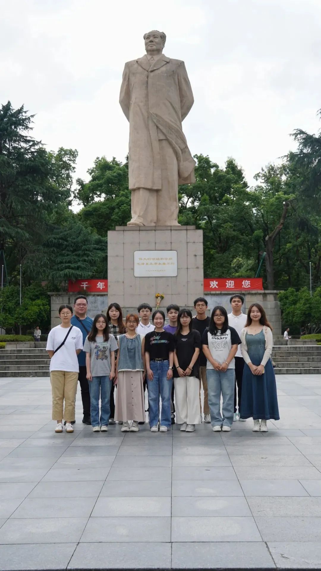 穿过图书馆,访学团来到东方红广场。广场中央,毛主席雕像巍然耸立,背倚岳麓,面朝湘江,遥望东方,仿佛在诉说着那个时代的辉煌。晨曦微露,东方欲晓,无数湖大学子曾在此求学、梦想,留下了无数难忘的回忆。