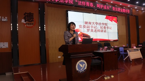 罗英副书记在致辞中强调,从青少年的行为与认知能力特点及青少年团伙犯罪增多,犯罪向低龄化发展的现状出发,青少年普法活动具有明显的重要性和紧迫性,她向小同学们发出从小树立对法治的信仰,培养学法守法懂法用法的良好习惯,成长为有理想有道德有文化有纪律的社会主义接班人的号召;向在座的老师们提出倡议,携手让更多的孩子从普法活动中受益。