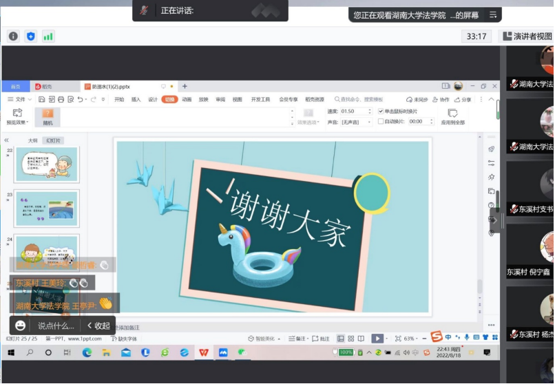 社会实践团队通过互联网会议平台召开线上宣传会,并组织乡村中许多青少年及其家长参会,向他们详细介绍危险水域的辨别、游泳注意事项、如何救援落水者以及落水后如何自救等内容。