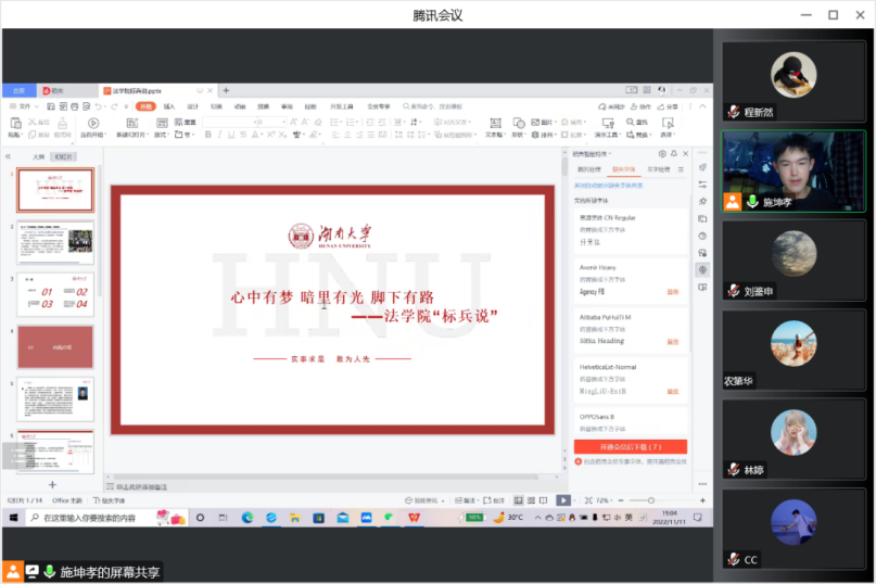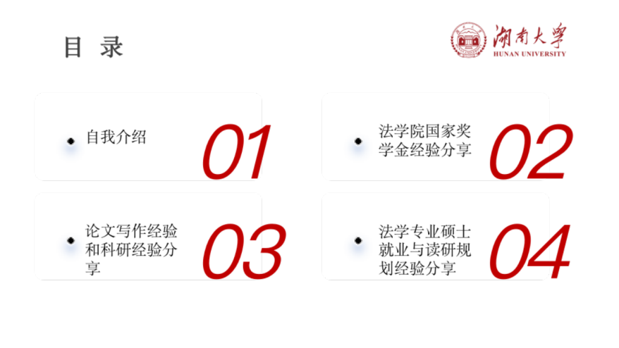 首先,在国奖经验方面,施坤孝介绍了奖学金申请条件以及可以参与的评奖评优类型,建议有意争取奖学金的同学及时撰写论文并投稿,积极报名参加法学论文写作大赛、模拟法庭比赛等法学专业竞赛。对于有意考取选调生的同学,在注重学业的同时还需做好学生工作,若获得优秀研究生干部等荣誉称号,有助于扩大自己的竞争优势。