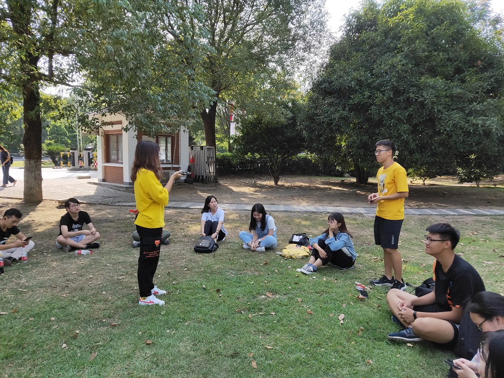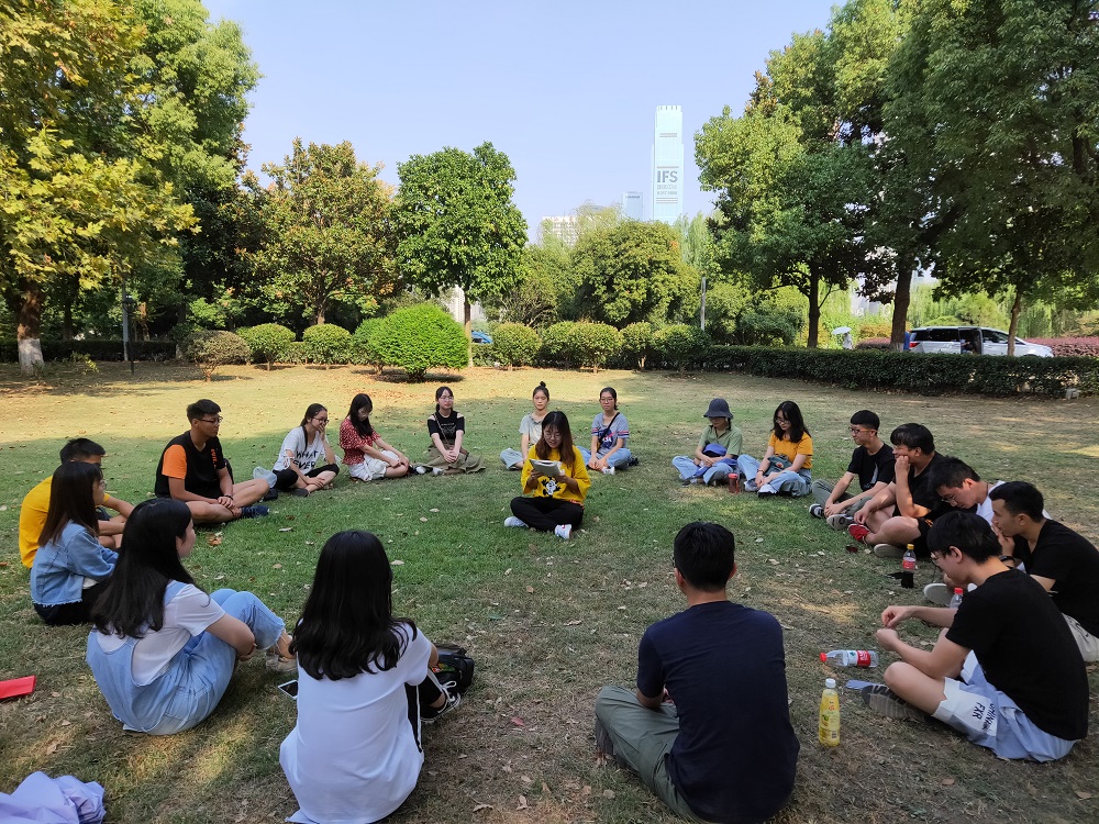 歌曲完毕,同学们围坐在草坪上,听团支书李萌萌讲述祖国70周年一路走来的风雨历程,从1949到2019——70年的不懈努力,70年的上下求索,才迎来今天的卓越辉煌。在橘洲的古树下,这节具有特殊意义的党课令同学们感触颇深。罗华宇同学在谈及自己的感想时说道:“‘中华儿女多奇志,敢叫日月换新天’,我们应该有‘为中华之崛起而奋斗’的宏伟抱负,应该有为祖国富强而献身的远大志向,我们应该用全部的生命和热血去热爱并且去建设我们的祖国。”