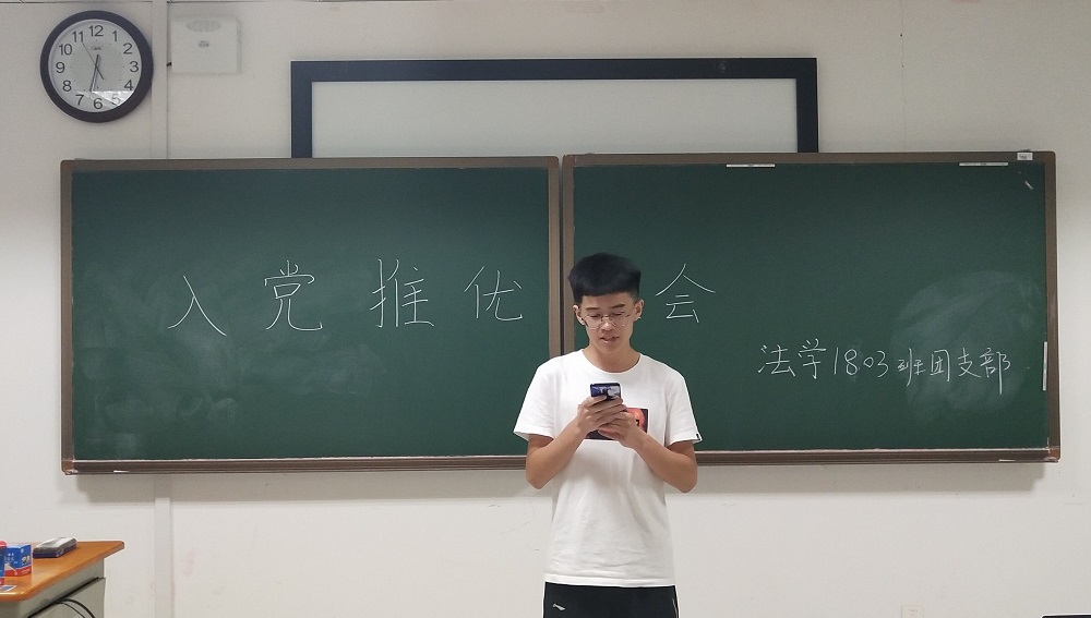 2019年是中华人民共和国成立70周年,回顾中国近代史征程,中国共产党领导中国各族人民,坚持真理,不忘初心,顽强拼搏,促成中华民族的历史性飞跃。为更好地服务于党的建设,为党的发展注入新鲜血液和力量,落实学院分团委入党推优工作,9月24日,法学1803班团支部在研究生楼A105举办入党推优大会。
