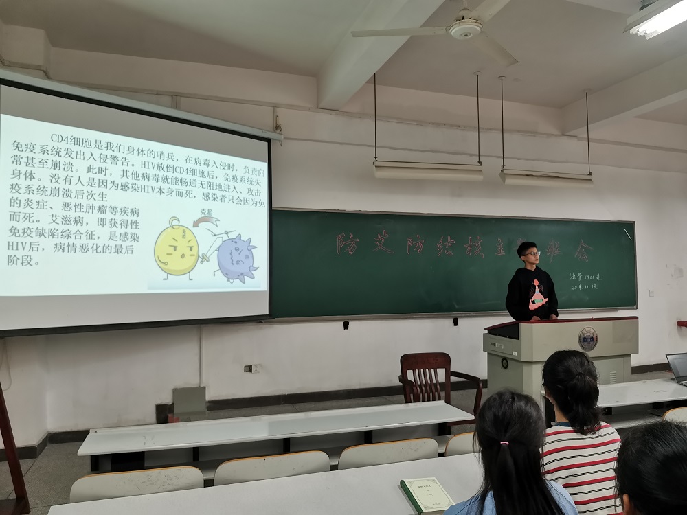 为落实上级有关文件指示和区疾控中心的工作要求,增强班级同学对艾滋病和结核病的正确认识,保障同学们的身心健康,法学1901班于10月21日晚在综合楼514教室开展“防艾防核,青春不染”主题班会活动。