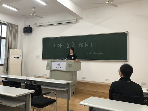 之后在班长的主持下,同学们各自分享了自己对于“系好人生第一粒扣子”、“不负青春,不负韶华”等习总书记传递给大家的人生哲理的理解与思考。韩创、赵雅龑、王治煜同学分别发言,表达了自己的感悟。“少年强、青年强则中国强。习近平号召全国广大青年,我们要深刻了解近代以来中国人民和中华民族不懈奋斗的光荣历史和伟大历程,坚定不移跟着中国共产党走,勇做走在时代前列的奋进者、开拓者、奉献者,让青春在为祖国、为人民、为民族的奉献中焕发出绚丽光彩!”赵雅龑同学讲道。韩创同学就高校为什么要重视和加强意识形态教育以及“系好人生第一粒扣子”的内涵,结合自己的亲身体验作了发言,并建议大家更多地在学习和生活中践行习近平新时代中国特色社会主义思想。