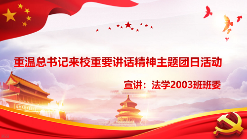 为坚定奋斗信念,2021年9月10日晚,法学2003班举行“重温讲话精神,争做时代新人”主题团日活动线上分享会,会议由宣传委员崔程新主持,法学2003班全体同学参与。