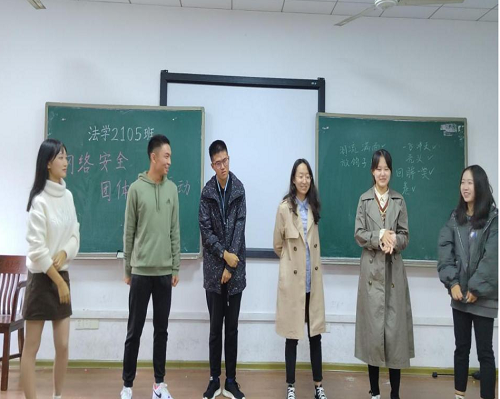 为进一步加强“网络安全”教育工作在学生间的开展,法学2105班于2021年10月17日下午在南校区综合楼308教室开展“网络安全”主题班会,2105班全体学生与班主任王静老师参与此次班会。